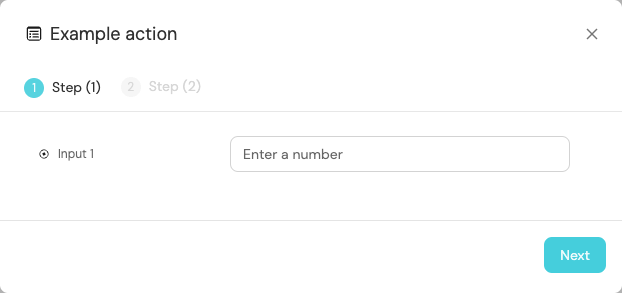 In cases where an action contains a large number of inputs, you may want to break the form into multiple steps. Users executing the action will see and fill each step at a time, which can help guide them through the process and make the action easier to understand.